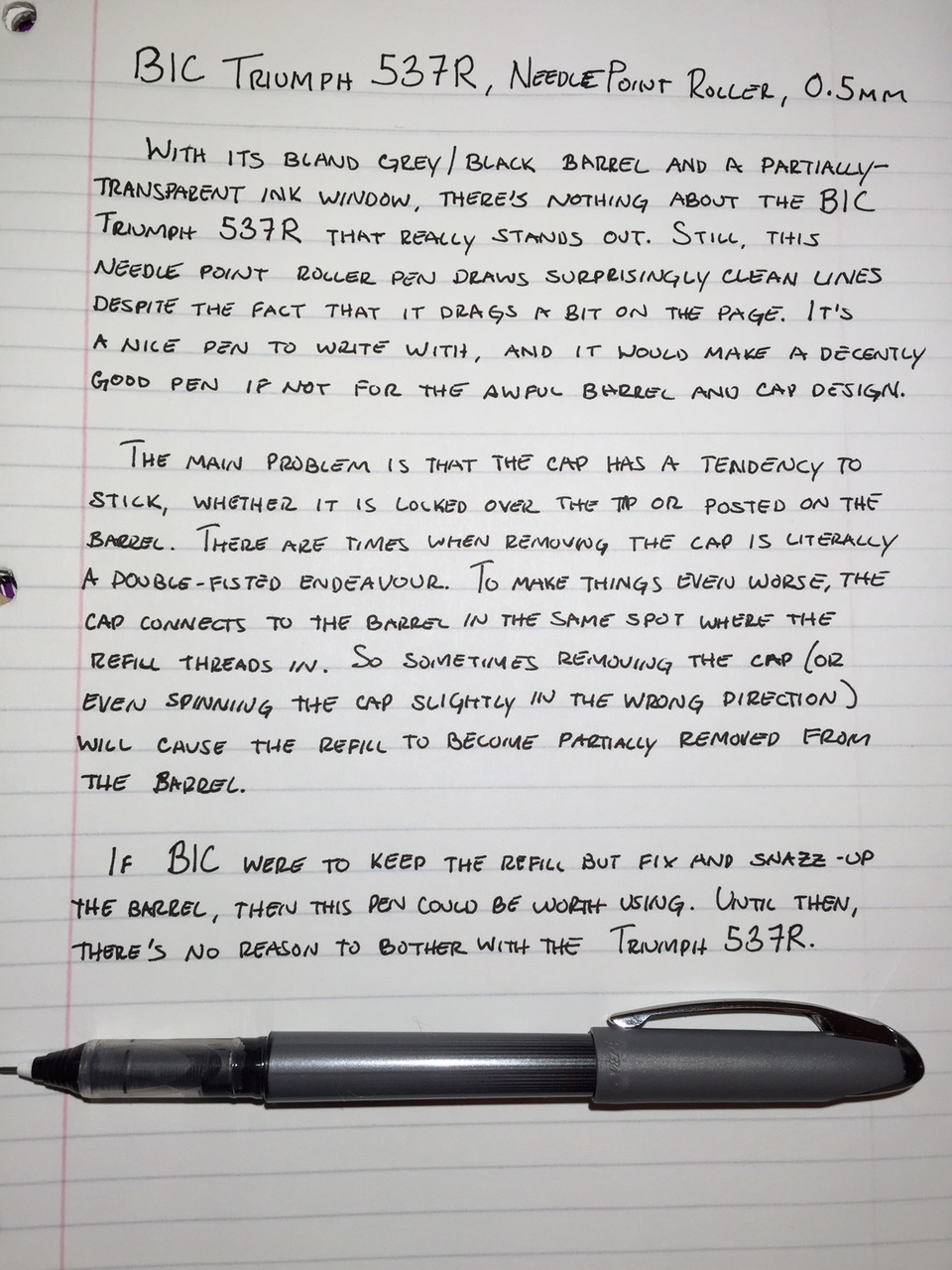 If BIC were to keep the refill but fix and snazz-up the barrel, then this pen could be worth using. Until then, there’s no reason to bother with the Triumph 537R.