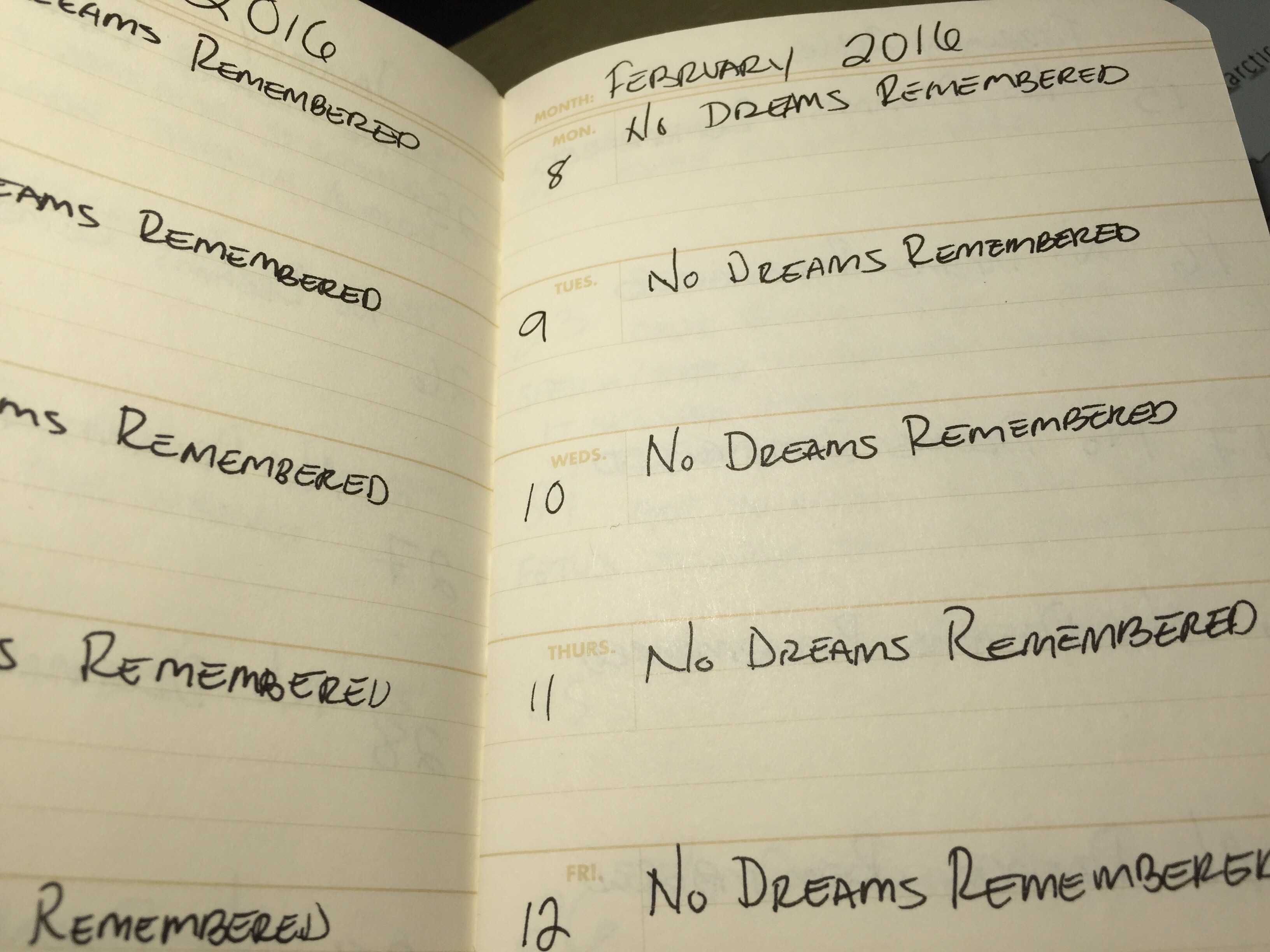 Eventually, I decided to use the datebook as a dream journal (though, it hasn’t really helped me remember any of those dreams), and I found that the ledger-style ruling was great for making lists. And after permanently losing the graph notebook at the Charlotte International Airport, the ledger book became my standard catch-all notebook, which ended up working great for that purpose.