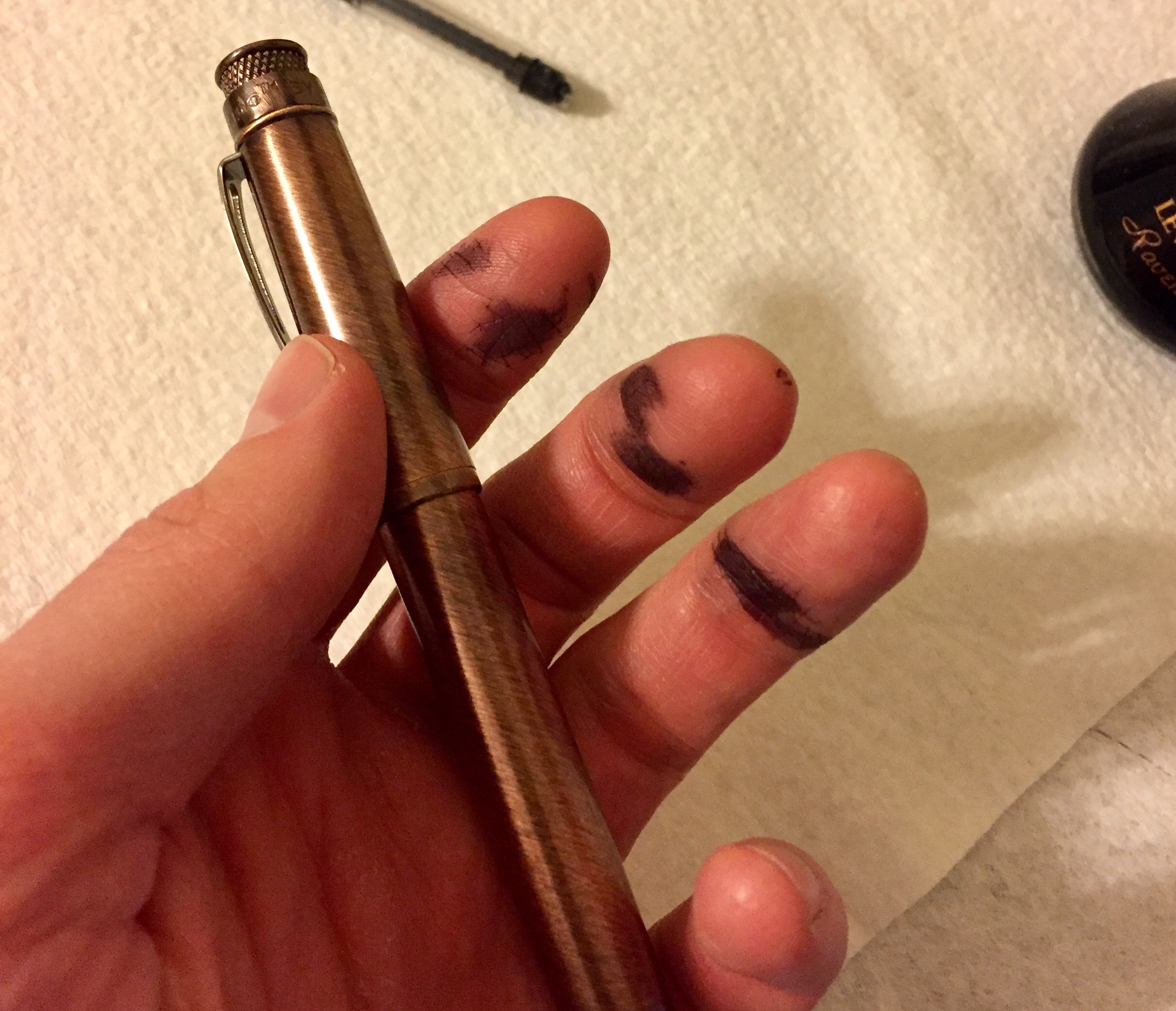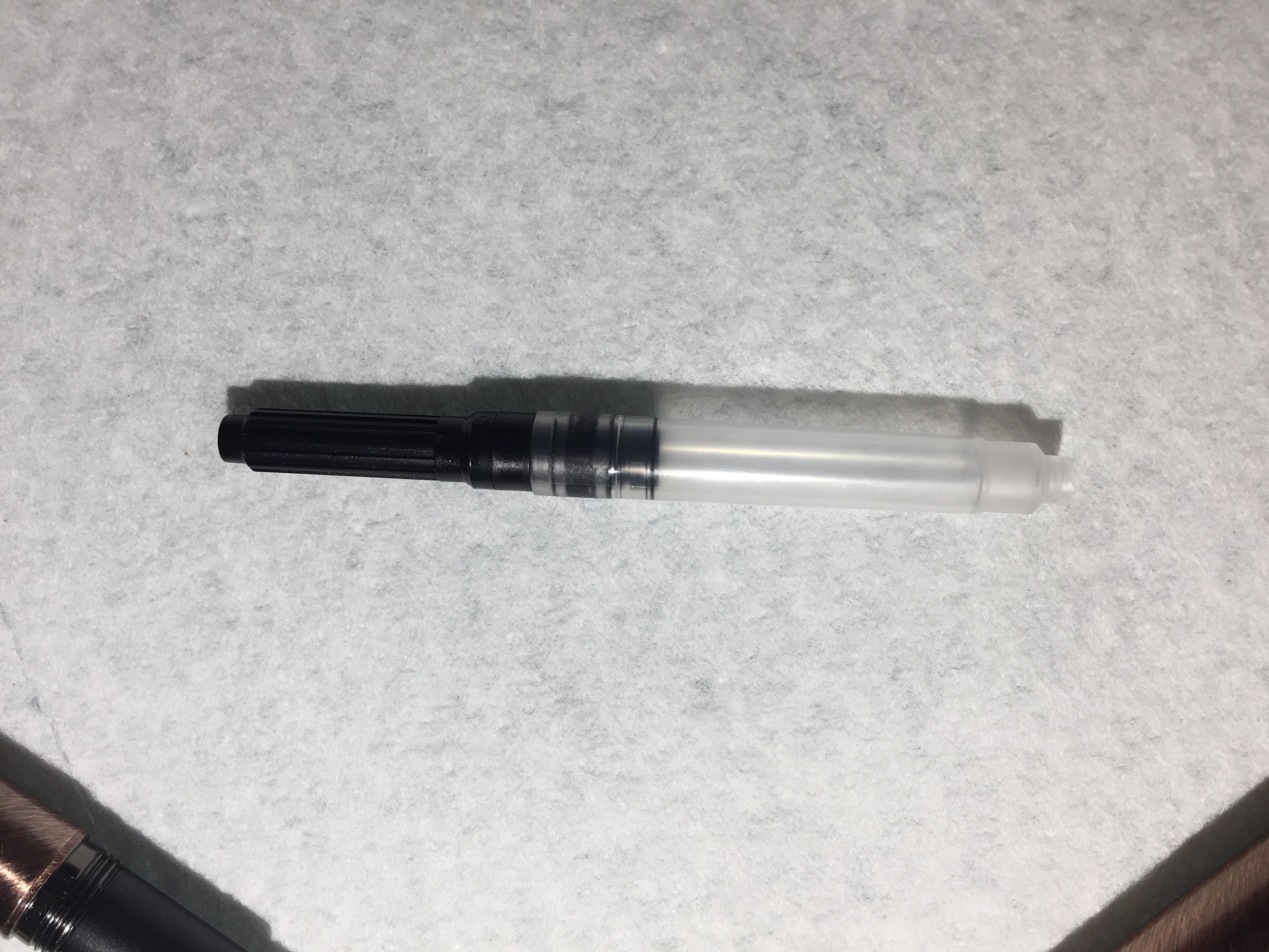 Initially, I was going to use the cartridge converter, and I even started filling the pen with some bottled ink. Then I remembered all the tedious cleaning I’d just finished, so I did an on-the-fly switch to the pre-filled cartridge. That probably wasn’t my best idea, as it caused a bit of a mess.