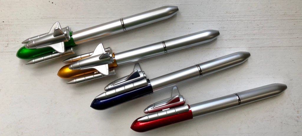 However, the Space Shuttle Pen does look kind of cool (which is why I bought it in the first place), and I like the variety of fuel tank colors. But this pen does feel a lot cheaper than it looks. So if you find yourself impulse purchasing these pens as I did, maybe just plan to use it as an adornment for your pen cup.