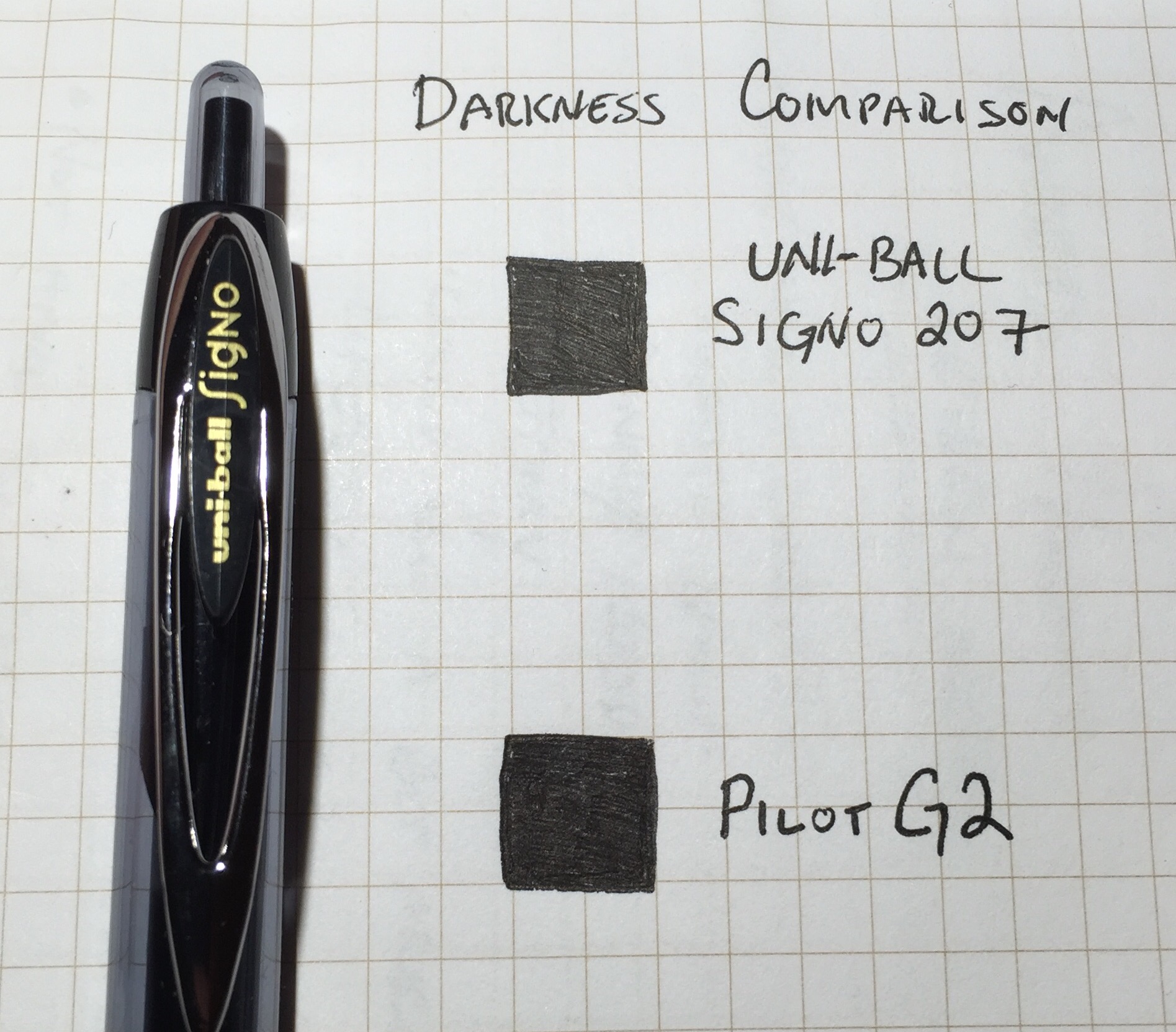 The pink is kind of what you’d expect, a standard pink with a metallic sheen. The gold, on the other hand, has almost a caramel-tint to it that looks really great. Just like the original Pilot G-2, they do a good job of not bleeding, but be warned that they are heavy smearers.