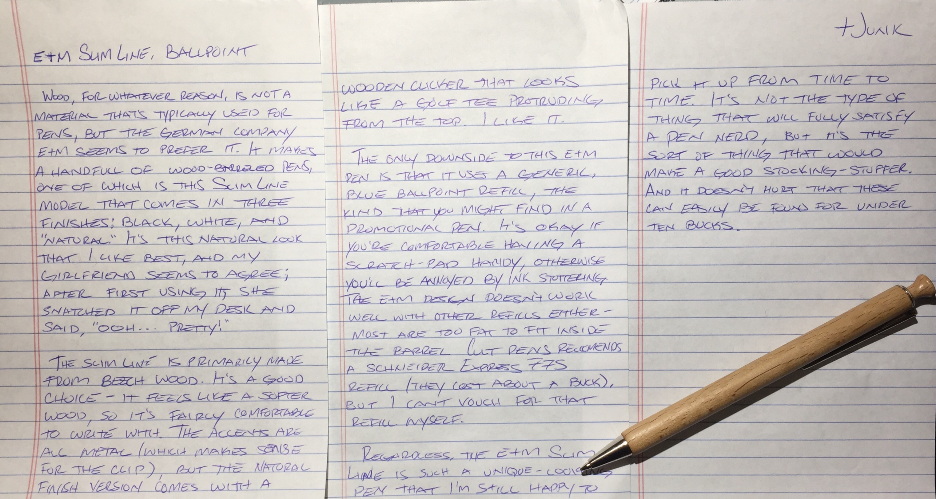 It’s not a bad refill either. It’s moderately smooth and should last for quite a while, but it skipped out enough to be annoying. I suppose I just think that for a pen that usually retails for $30-$40, it should have something much better.