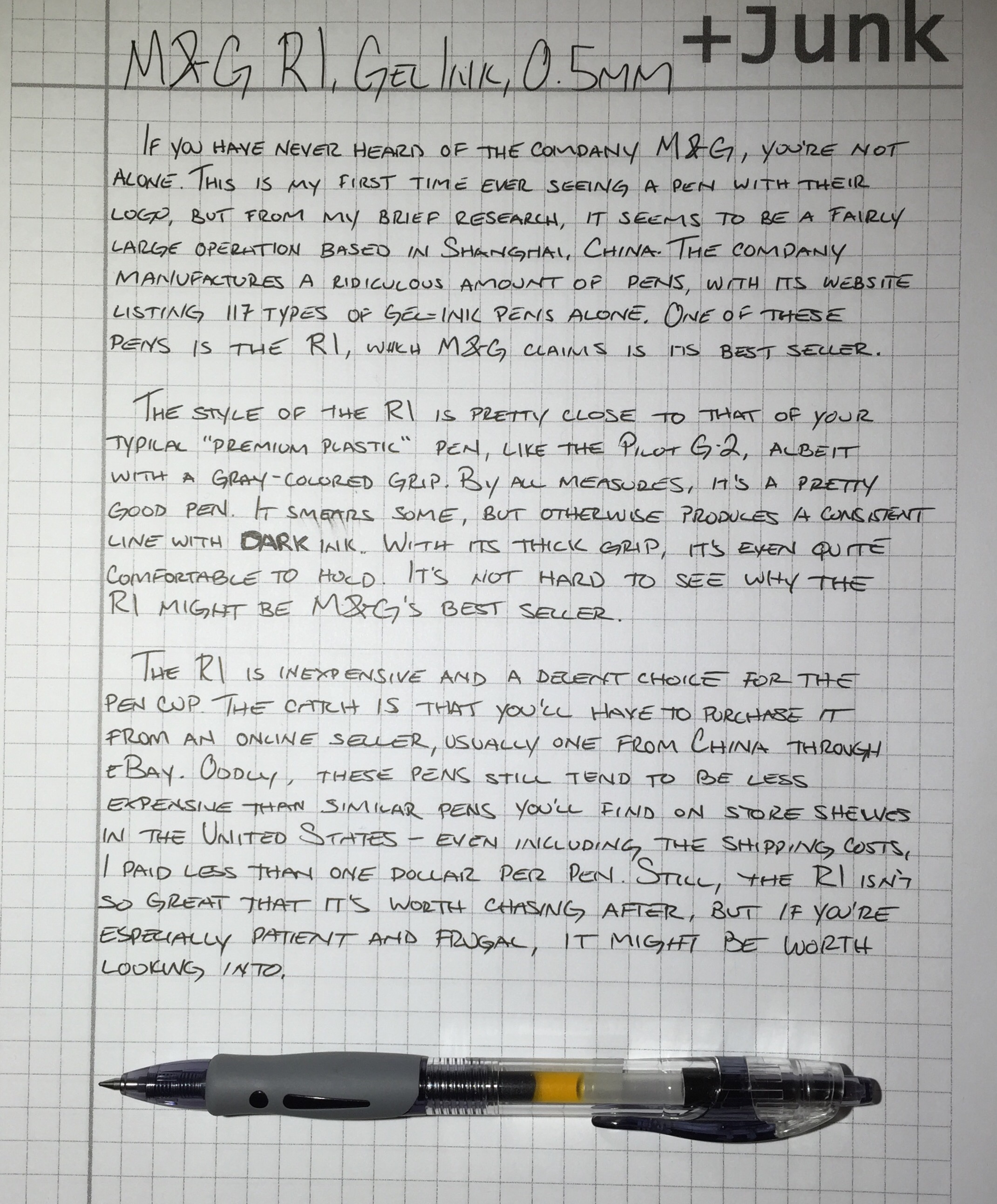 I don’t know why M&G chose to name their erasable pen “Wisdom,” but it makes me think of the Serenity Prayer, the aphorism that asks for wisdom to know the difference between the things that can and cannot be changed. I guess that makes it a bit ironic, then, that the M&G Wisdom has such an awful eraser. With this pen, you’re better off not trying to change anything.