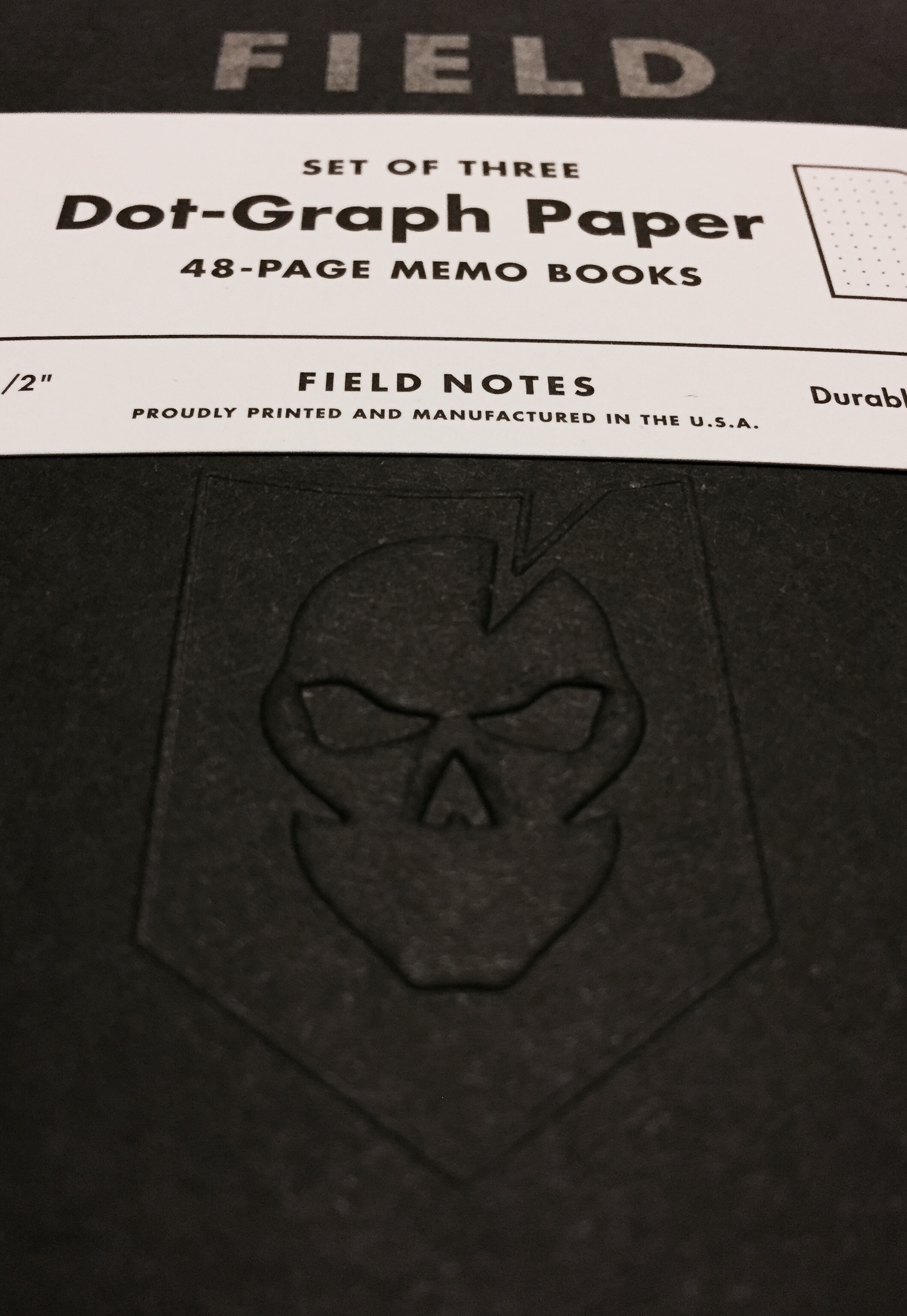 Its theme pays homage to Earth’s celestial buddy, the moon, and there’s a lot more than usual going on with these little 3.5″ x 5.5″ pocket notebooks. They contain 60# light gray notebook paper with a reticle grid ruling. They are bound together with black staples that blend into a shimmery, black cover stock, giving it an almost leather-like look. And along with the the embossed Field Notes logo on the front, you’ll find a black moon logo embossed on the back cover.