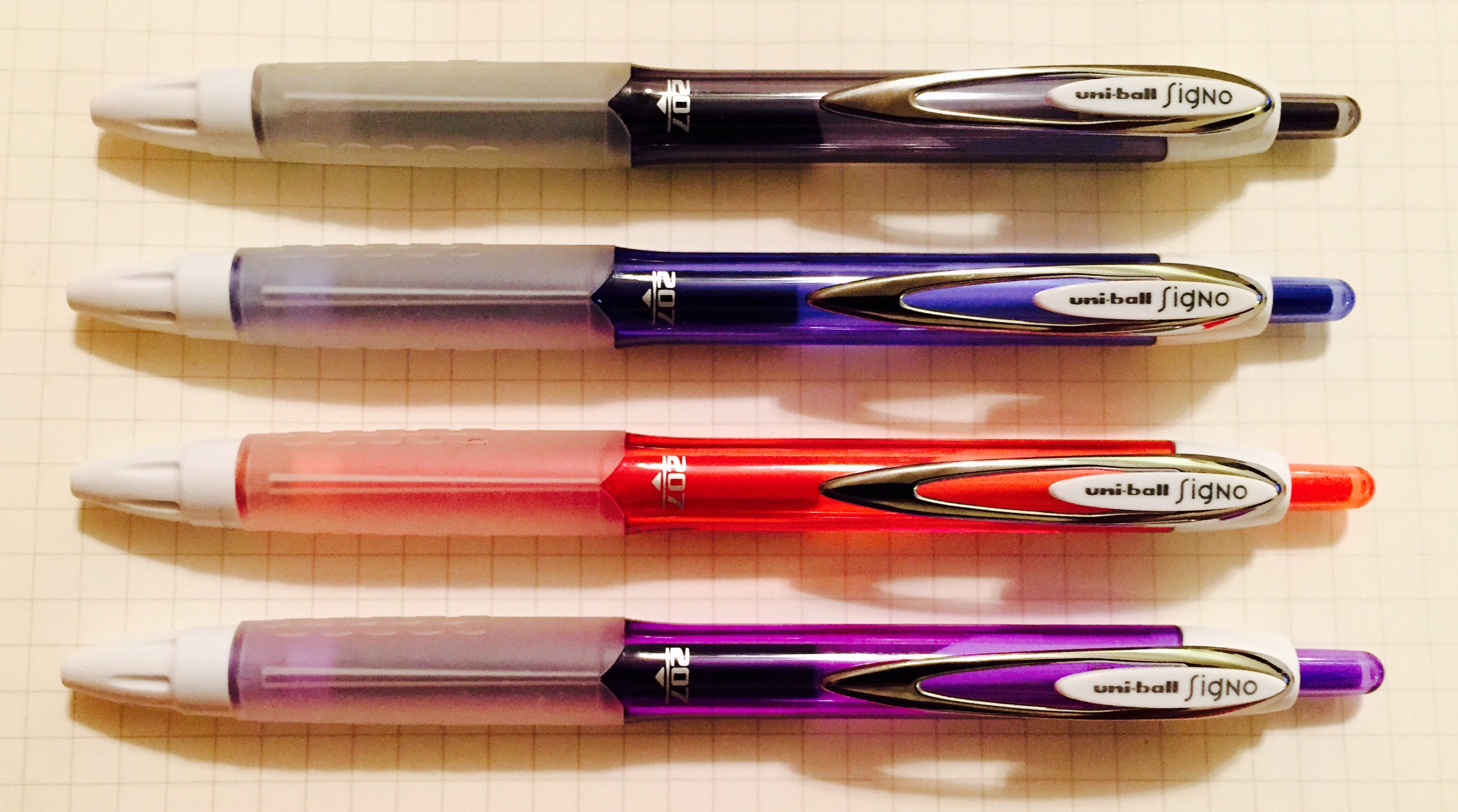 This set comes with seven colors (plus black): blue, red, green, pink, orange, turquoise, and purple. Some of the colors almost look like highlighters, which isn’t something I tend to like. But the red, blue, and purple are dark and vivid – great colors.